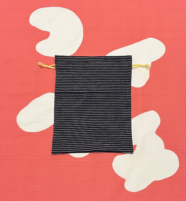 鯉八が着用していた着物のアップサイクル巾着(濃紺に横縞・大)