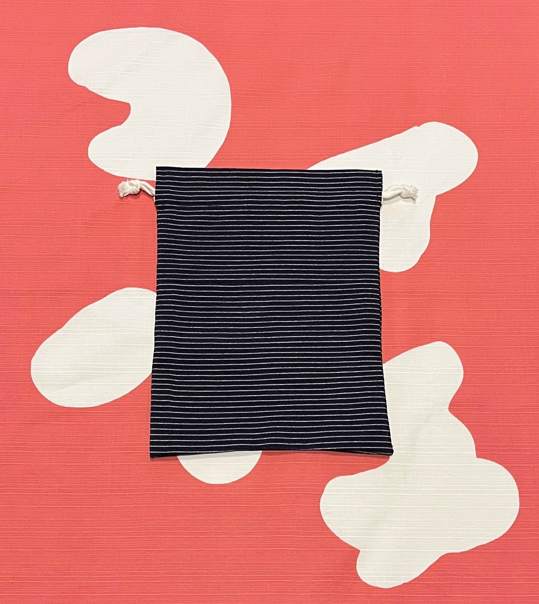 鯉八が着用していた着物のアップサイクル巾着(濃紺に横縞・大)