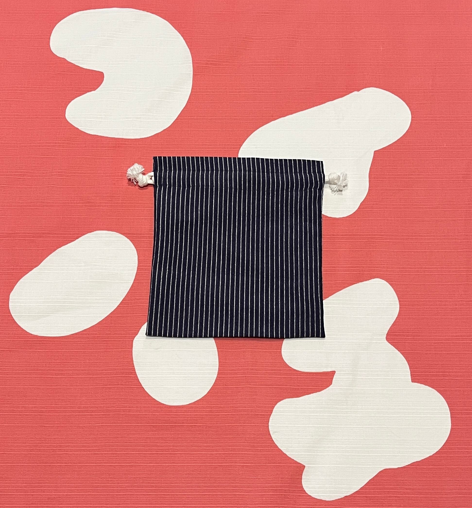 鯉八が着用していた着物のアップサイクル巾着(濃紺に縦縞・小)